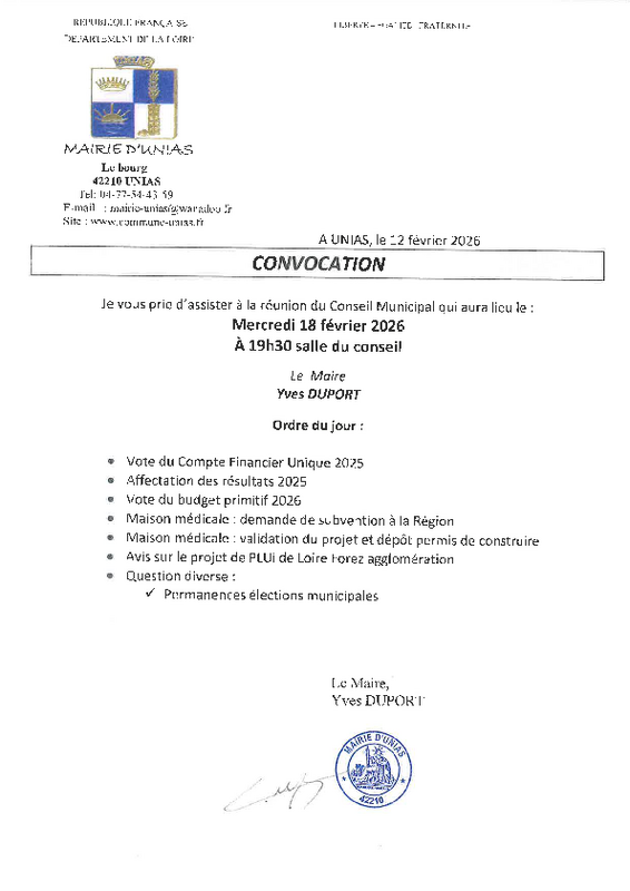 convocation conseil municipal du 18 février 2026